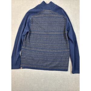 Royal Robbin’s Sweater Men’s Large Wool 1/4 Zip Striped Blue Gray Camping Spring
