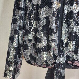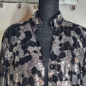 Chico's Black Silver Sequin Twilight Dazzle Tropez Poly Jacket Sz Chico 3 US XL