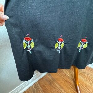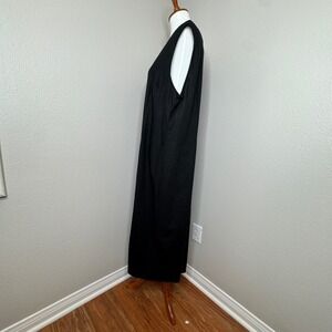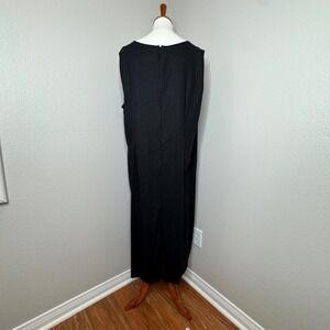 A.K.C. Vintage Linen Blend Sleeveless Maxi Dress 3X Black Embroidered Flowers