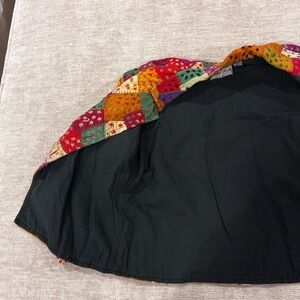 Material: Likely a cotton or blend fabric with colorful patches, lined for comfort.