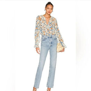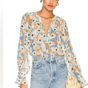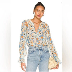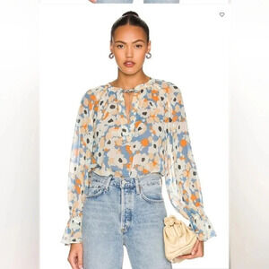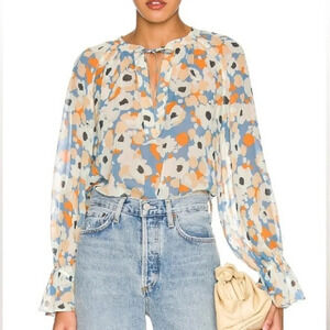 Joie peasant floral boho smocking self tie elastic wrists medium