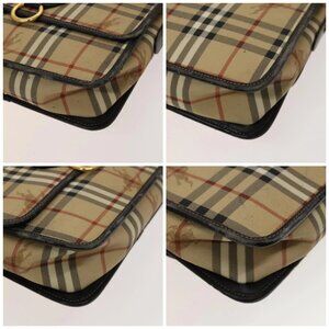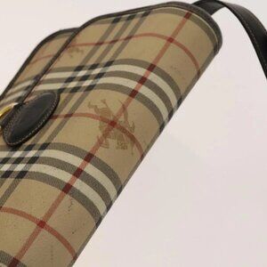 BURBERRY Nova Check Shoulder Bag PVC Beige Gold Auth 136729