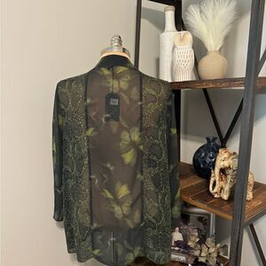 Elevate your wardrobe with this gorgeous green AllSaints Womens Casi Ceres Kimono featuring a beautiful butterfly print. The long sleeve kimono sleeve and open front neckline make it perfect for any occasion, whether it's a casual day out or a party. Lightweight and made of high-quality polyester material, this kimono is perfect for summer, fall, or spring.