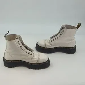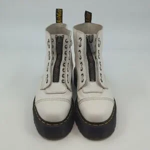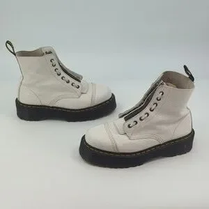 DR. MARTENS Sinclair White Milled Nappa Leather Platform Boots Zip Front Sz 10