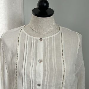 NWT off white 100% ramie long sleeve blouse by Zara. Laying flat approximate measurements are 28” pit to pit, 25” ling. Size L, but I think it’s a little oversized. Please see measurements.