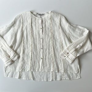 NWT Zara Long Sleeve Oversized Eylet Boho Linen Top Blouse