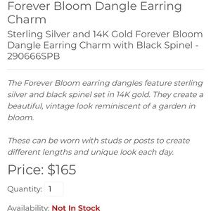 Sterling Silver and 14K Gold Forever Bloom Dangle Earring Charm with Black Spinel