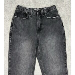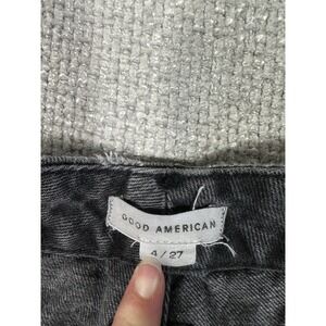 Good American jeans in good pre-owned condition. Color is a faded black with manufactured fading and distressing along pockets, hems and waistband. Please see photos for measurements and condition.