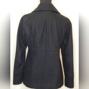 Your secret style weapon: This MICHAEL Michael Kors peacoat features a classic double-breasted silhouette with button closure and notch lapels in a sleek, semi-fitted hip length crafted from a wool blend fabric.