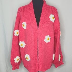 BiBi Pink Open Front Daisy Cardigan - Size M