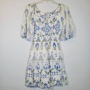 SAYLOR Womens Gracey Floral Puff Sleeve Dress Size XS White Sundress Prairie