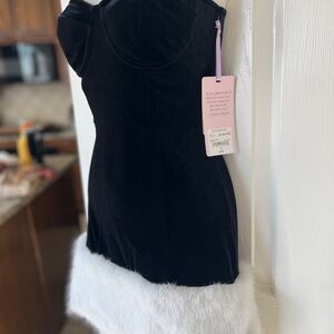 Made from plush velvet, this junior's strapless mini dress is expertly cut for a figure-hugging fit with a sweetheart neckline designed with molded, supportive cups, and a luxe faux fur trim.