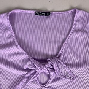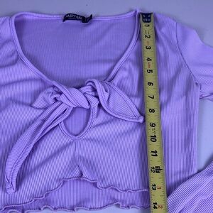 Nasty Gal lilac lavender ribbed tie-front bell-sleeve crop top lettuce edges