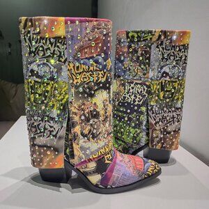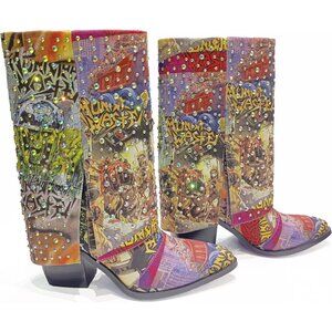 One-of-a-Kind Design: Each pair features random graffiti patterns with sparkling rhinestones, ensuring your mid-calf cowboy boots are truly unique.