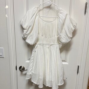 Elegant white dress with puff sleeves. Flowy and stylish design. Three layers make this dress comfortable to wear - it is not see through. Worn briefly one time.