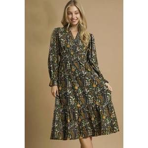 NEW UMGEE floral midi dress with smocked waist in black mix