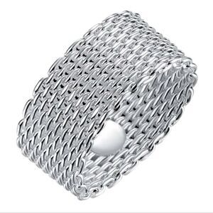 This elegant silver mesh ring adds a touch of sophistication to any outfit. Perfect for any occasion.