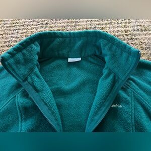 Columbia Jacket Womens Large Teal/Green Fleece, Full Zip, zip Pockets, Outdoor, sportswear. 100% polyester. Great condition! 24” armpit, 25” long, 22” sleeve.