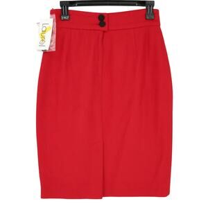 Laurel Escada Skirt Womens 8 Red Wool Blend Lined Pencil Buttons Zipper Rock New