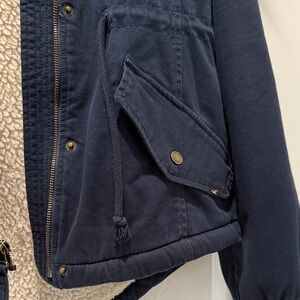 Hollister Navy Jacket with Faux Fur Hood sz S