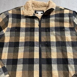 Carbon2Cobalt Jacket Mens Large Sherpa Lined Plaid Flannel Shacket Brown Black