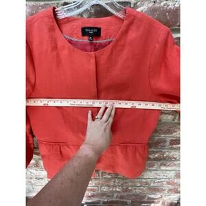 Talbots Linen Collarless Blazer Peplum Size 16P Orange Invisible Closure Petite
