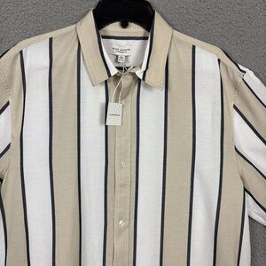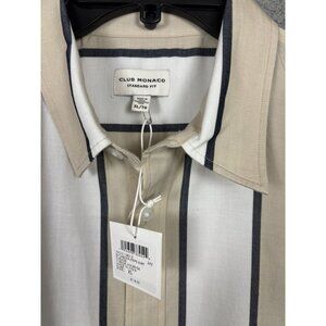 Club Monaco Mens Striped Short Sleeve Shirt Beige/White Size Extra Large NWT's