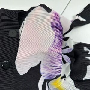 Boutique Dressy Floral Micro Pleated Slinky Button Front Midi Dress