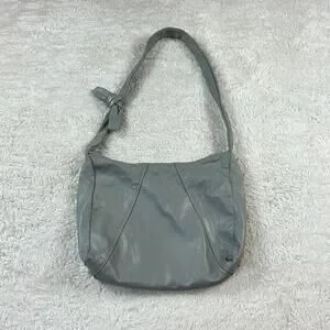 Vintage 80s unbranded dove grey leather shoulder bag with matching coin purse