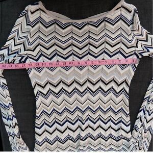 White House Black Market Chevron Long Sleeve Knit V-Neck Blouse Size Small