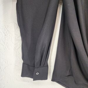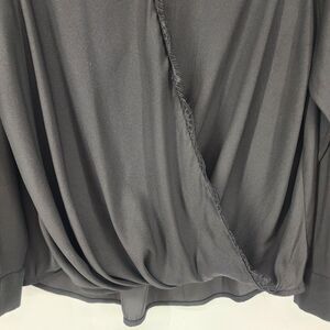 Minimalist Whimsy Witchy Elegant Black Draped Blouse Lace Trim | Ann Taylor XL