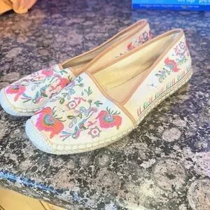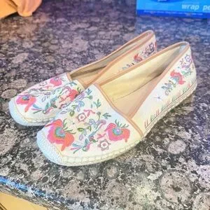 Feminine floral lightweight, super cute pair of slip on flats, great wood, skirts, jeans, or short shorts