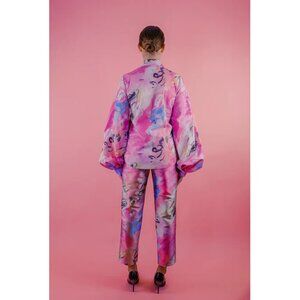 Patricia Fitted Pant from Neubyrne. Twill cropped pants with a high waist, in a maximalist pink heavy abstract print. Zip fly, button at waist. 100% poly, dry clean. Excellent condition! Worn once for a photoshoot. No flaws or wear.