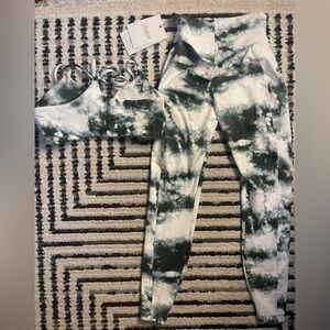 Top notch bra (XL) & peach booty leggings (M) in green/white tie die