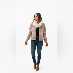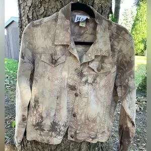 Discover a stylish edge with this Women's Tie-Dye Jean Jacket in tan. Perfect for adding a trendy touch to your casual wardrobe.