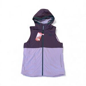 Lavender vest with The North Face logo. Features a hood and front zipper.