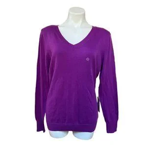Worthington NEW Women's lightweight pullover V-neck sweater in "Tropical Orchid" color, a really pretty magenta purple color. Banded cuffs and waistband. Very soft feeling knit.