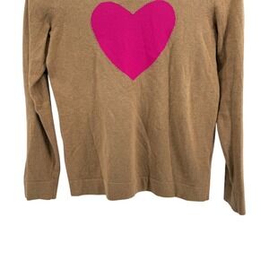 J Crew Teddy Sweater Camel Pink Heart Crew Knit Pullover Pre-Owned Womens M/L