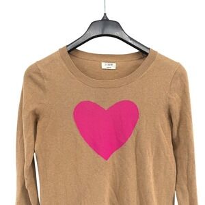 Keywords: J.Crew, Heart Sweater, Knitwear, Casual, Everyday, Cozy, Pink Heart, Brown Sweater, Pullover, Long Sleeve, Classic, Comfortable, Girly