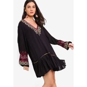 Free People Wild One Black Embroidered Boho Tunic Dress | Size Small