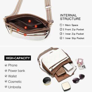 Features: This summer-ready bag is made of durable vegan leather with a sleek quilted design. It's lightweight, compact, and perfect for carrying daily essentials. The wide, adjustable shoulder strap offers versatility to wear as a shoulder bag or crossbody. It includes a secure top zipper, one main zippered compartment, an inside slit pocket, and two front zippered pockets—ideal for staying organized on the go.