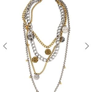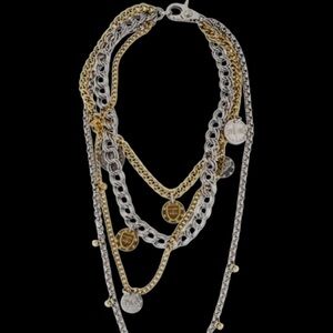 Design: It is a unique, layered staple piece featuring a tiered 4-strand chain design in mixed metals of gold and silver.