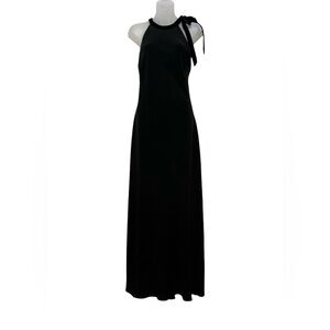 Lauren Ralph Lauren chiffon halter dress with velvet ribbon tie at left shoulder. Lined. Elegant. Women’s 10.