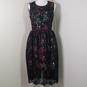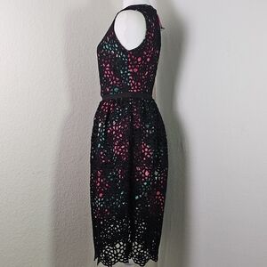 Wolven Anthropologie Women's Terrace Black Lace Overlay Floral Sheath Dress Sz 4