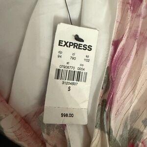 Embrace the sophisticated charm of the Express dress, featuring an asymmetrical one-shoulder design with elegant ruffled details. The pink and cream hues create a soft, romantic look perfect for special occasions. This dress offers a unique silhouette that stands out with its flowing style and delicate color palette.