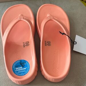 Comfortable Columbia flip flops in a vibrant apricot color Perfect for casual wear.