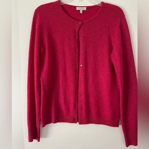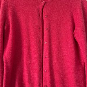 Elegant red cardigan by Madison. Soft and comfortable. Perfect for layering.