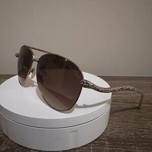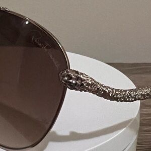 Chic Roberto Cavalli sunglasses with a sleek brown lens and rose gold frame. Perfect for adding a touch of luxury to your look. New with no defects. Beautiful crystals with amazing details.