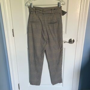 Zara TRF Collection Brown Black Plaid Belted Trousers Dress Pants Size Small