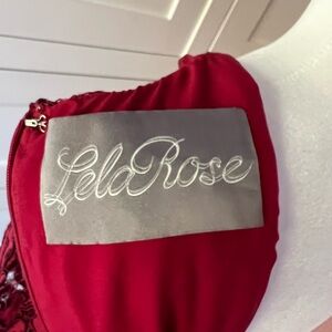 Lela Rose Red Floral Lace Long Sleeve Dress